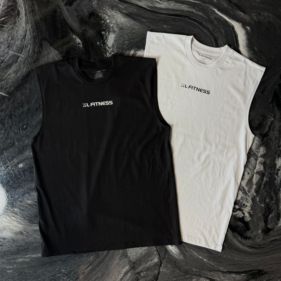 Sleeveless tank with hemmed armhole edges and neck ribbing.